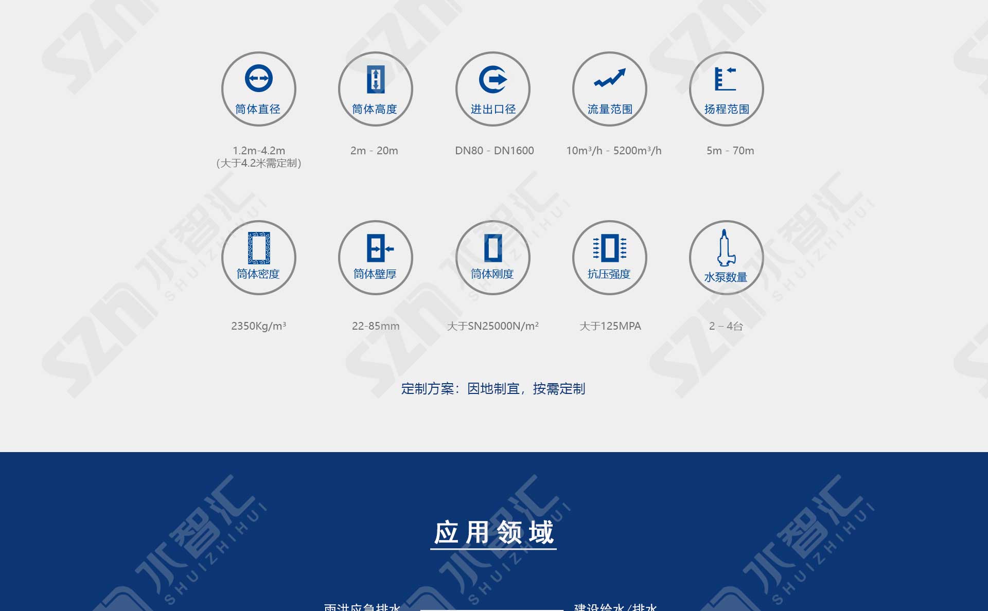 聚合物混凝土泵站多個核心結構部件由安全可靠、綠色環保的聚合物混凝土構成,通過固化體系定向回收技術,解決泵站大型結構部件回收再利用的難題。泵站采用自主研發的自清潔螺旋裝置底座,能夠實現無額外動力自動清潔作用。泵站的潛水螺旋離心泵采用永磁同步電機,具有效率高、體積小、功率因數高等多個優點;并采取定制化的精細設計,確保永磁體不退磁;再搭配高性能控制器,系統效率高。泵站具備CED流態模擬分析和FEA有限元分析,優化筒體內部流道,改善流態,改善筒體應力分布,確保筒體在泵站全壽命周期內安全、可靠地運行,廣泛應用于河湖沿岸地區、灘涂淤泥地區、土質疏松地區、交通要道地區、建筑密集地區等場景。