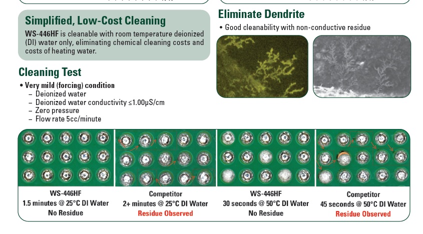 WS-446H是一種堅固耐用、無鹵素的水洗助焊劑,旨在為復雜的應用提供簡單的解決方案,尤其是為 BGA 球接和倒裝芯片工藝的單步清洗提供簡單的解決方案。的簡單解決方案,特別是那些需要對 BGA 球接和倒裝芯片工藝進行單一清洗步驟的應用。它具有強大的活化劑系統(tǒng),即使在銅 OSP、ENEPIG 和 ENIG 等最苛刻的基底金屬化上也能促進良好的潤濕、 其流變性適用于浸漬倒裝芯片應用,以及引腳轉移或印刷 BGA 球接應用。球尺寸 0.25mm 及以上的應用。INDIUM銦泰BGA植球和倒裝芯片無鹵助焊劑WS-446H 可最大限度地減少非濕式開路缺陷、缺失球和電泳缺陷,從而幫助提高產(chǎn)量。 缺陷、缺球和電化學遷移 (ECM),從而提高生產(chǎn)良率。