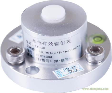 該傳感器采用硅光探測器,并通過一個400-700nm的光學濾光器。當有光照時,產生一個與入射輻射強度成正比的電壓信號,并且其靈敏度與入射光的直射角度的余弦成正比,每臺光合有效輻射表都給出各自的靈敏度(原始毫伏電壓輸出時),可直接計算出單位為μ?mol/m2?s的數值。