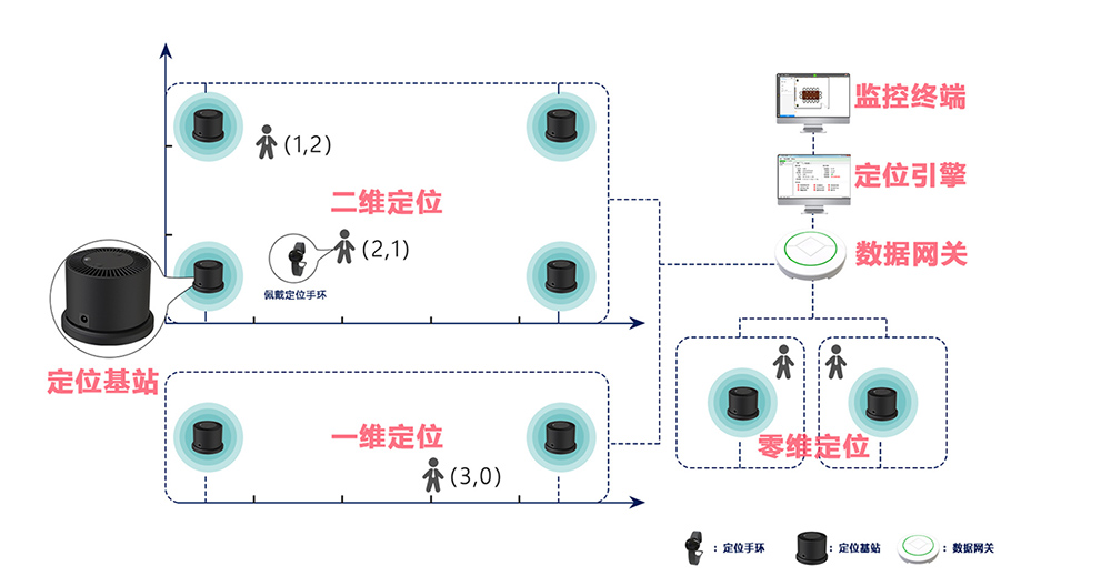 零維定位:一個定位基站對標(biāo)簽實現(xiàn)存在感應(yīng)檢測,可應(yīng)用于封閉房間、坑洞內(nèi)。西安三星水池、成都檢修段等。