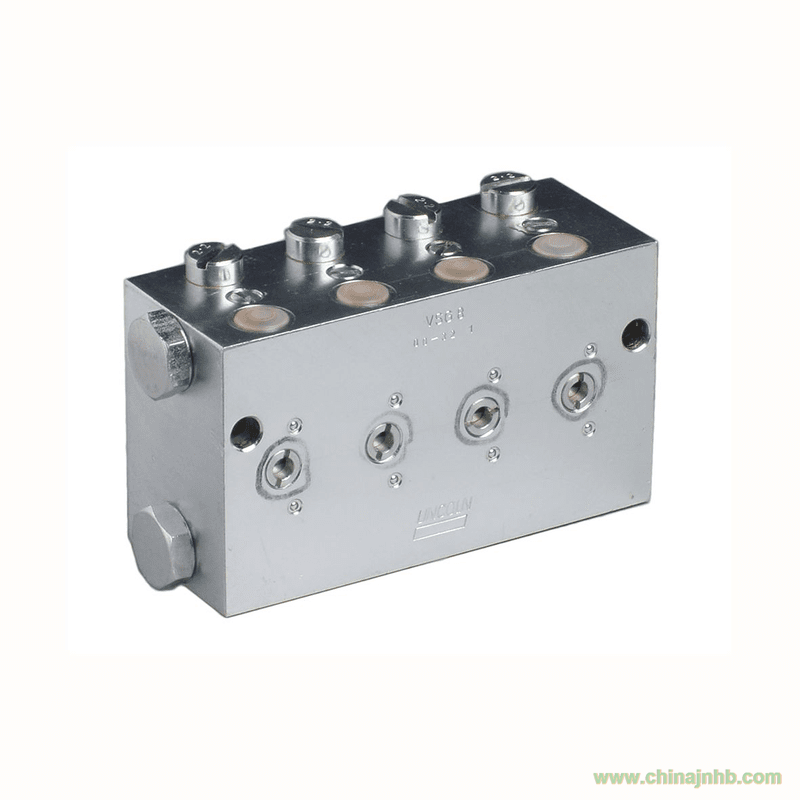 美國Lincoln林肯雙線分配器VSG6-KR,蘇州琳肯潤滑科技有限公司,林肯雙線分配閥最多有8個出口,每對出口裝配個指針用于目測監控。雙線分閥有防塵材料、防塵防酸材料、電氣監控、適用于惡劣工況下的磁鐵式排量調節裝置、耐高溫的氟橡膠材料密封及NPT接口螺紋等多種型號可供選擇。具體參見型號說明。所有的雙線分配閥的工作原理是一樣的,VSG、VSL、VSKH的區別在于排量不同,VSKH與VSKV的區別在于前者出口在側面,后者出口在正面(垂直面)。這樣使布管時更加靈活。帶MR后綴(磁鐵式調節裝置)的分配閥內無動點密封,適合于在惡劣工況下作業,如多水、多塵、高溫至120C。VSG,VSL,VSKH及VSKⅴ系列分配閥采用高質量、鍍鋅鋼材料制成,用于高壓(達400bar)雙線系統。