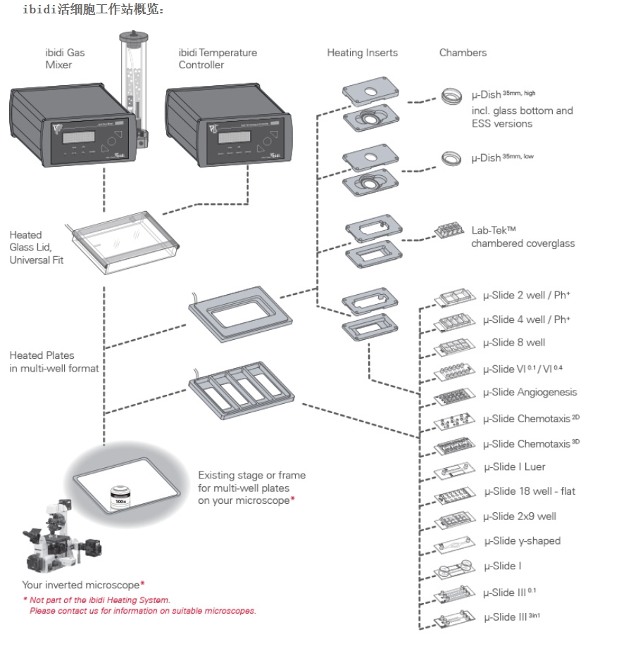 ibidi活細胞工作站,是專為活細胞成像觀察設計的。該系統適用于所有的倒置顯微鏡,可為活細胞成像提供穩定的溫度、CO2和濕度條件,避免樣品在培養箱和顯微鏡之間來回移動對實驗結果造成的不利影響。
