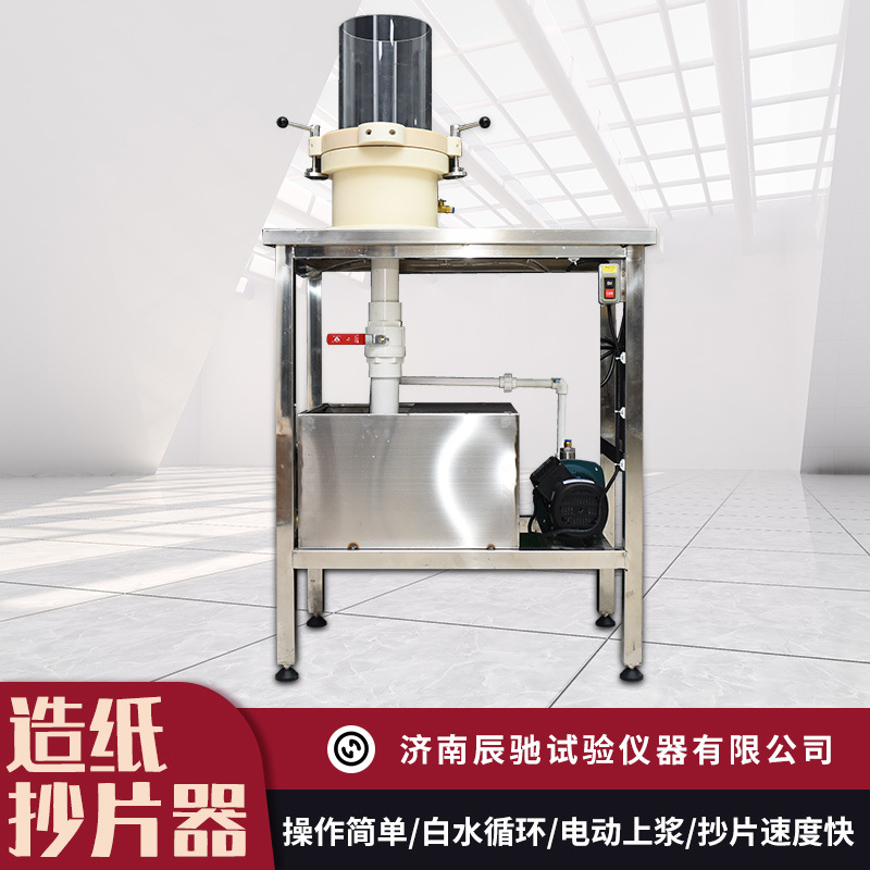 水循環式造紙抄片器是造紙實驗室用于把紙漿制成φ200紙樣的紙頁成型設備。