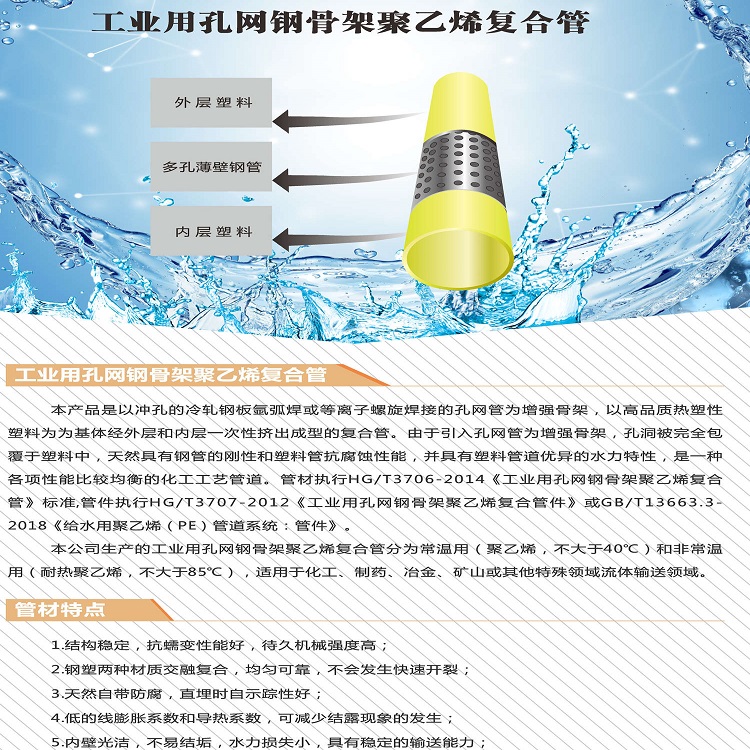 冷水用孔網鋼帶PE復合管,熱流體用孔網鋼帶PE-RT復合管