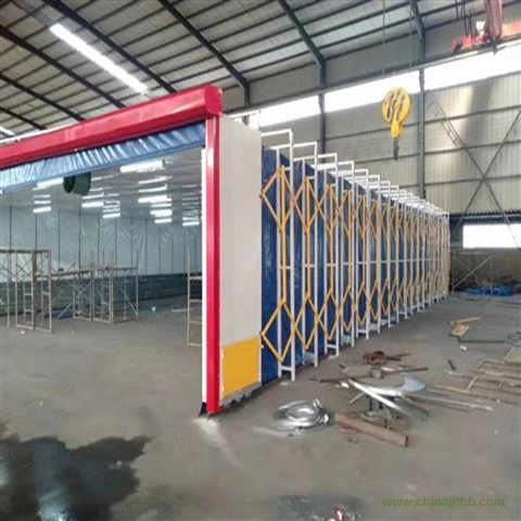 伸縮移動式噴漆房是我公司的***產(chǎn)品,它適用于各種大中型設(shè)備及零部件的打磨,噴漆及烘干作業(yè)。展開前室,形成一個(gè)封閉或半封閉空間,在伸縮移動式噴漆房中進(jìn)行噴漆或打磨作業(yè),收縮前室后形成一個(gè)敞開式空間,方便進(jìn)行工件轉(zhuǎn)運(yùn)及翻轉(zhuǎn)工作,*地降低了工人勞動強(qiáng)度和工作效率。噴漆房整體為框架式結(jié)構(gòu),表面噴塑,框架之間由阻燃pvc布鏈接密封,顏色內(nèi)白外蘭,外形美觀大方,安裝快捷方便,價(jià)格低廉,運(yùn)行平穩(wěn)安全***。前室可伸展3-60米不等,寬度可做成2-25米不等,它凈化***漆霧處理和打磨粉塵處理率,*地提高了工人噴漆工作環(huán)境質(zhì)量,***廣大客戶***和親睞。