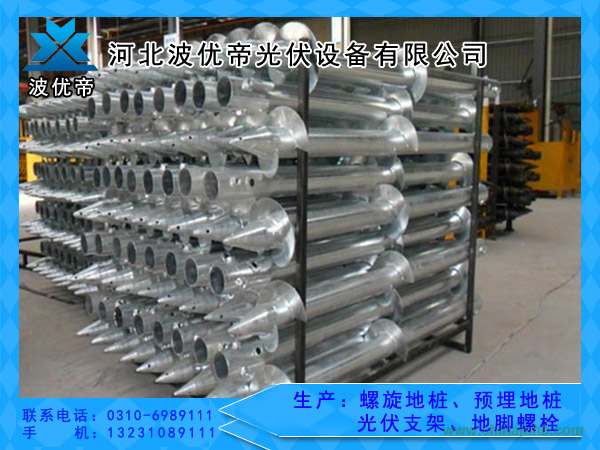 螺旋地樁是一種新型的太陽能光伏配套產品,適用于各大太陽能光伏、風能及建筑類行業、如太陽能電站樁基、廣告牌樁基、標志旗樁基、木質房屋樁基等,適用于各種地質,如粘土、戈壁灘、礫石等,其高負荷性能、穩固性、抗沉降性及抗拉拔性,深受業內同行的青睞。
