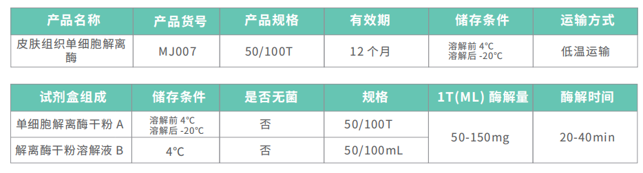 本產品是自主研發生產的多元復合酶,根據不同組織的細胞間質種類配備8種以上的復合酶,可以更好的消化解離細胞間的各種組織基質,比單純使用進口膠原酶IV、DNA酶或進口競品的三四種混合酶的解離效率更高,解離時間短、細胞得率高、細胞活性強、抗原表位完整,自研自產成本更低,更有競爭力。